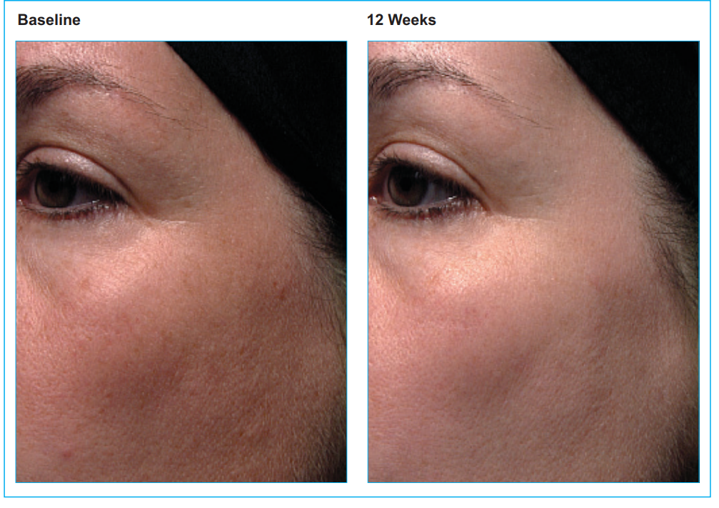 improved facial skin texture at 4 and 12 weeks and noticeably reduced dark spots by 8 weeks in women ages 35–60.